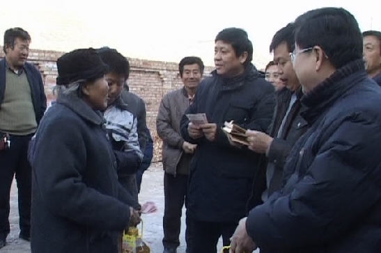 听说榆林市工业学校的教职员工要来看望慰问,前中庄村的14户受助对象早早来到村委会大院等候。上午9时,慰问正式开始,市工业学校校长艾紹生亲手为每户受助对象发放300元现金以及食用油等物品。另外,在此次活动中,市工业学校还给前中庄村村委会捐赠了一台价值5千多元的电脑。