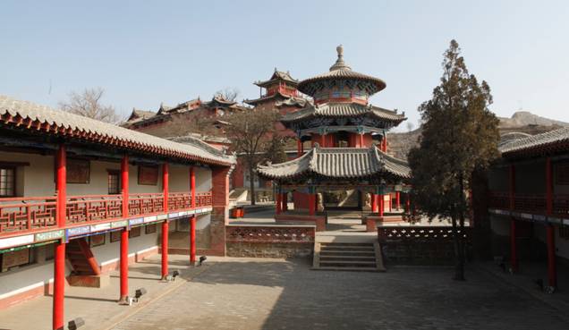 盘龙山古建群 盘龙山古建群,位于米脂县城北盘龙山(马鞍山)南麓,占地面积 11400 平方米,建筑面积 4600 平方米,座北面南,偏东 15 °。古建群始建于明嘉靖年间 (1522 ~ 1566) 年。据