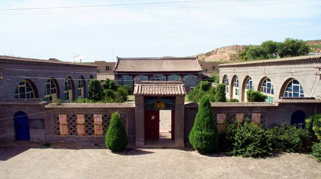 马明方故居 马明方故居位于米脂县杨家沟镇岳家岔村。故居始建于民国年间,坐东向西,由正面 3 孔石砌拱形窑洞、倒座房、马棚建筑组成,形成封闭式四合院。正窑脑畔平顶,覆土,