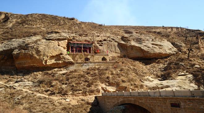 王沙沟石窟 王沙沟石窟(万佛洞)位于米脂县银州镇王沙沟村。由伽蓝护法殿(又称佛祖殿)、九天圣母洞、无量寿佛殿、观音洞、白衣洞、关圣殿等大小 27 处石窟组成,南北跨度