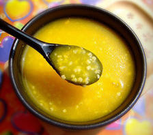 2.准备半瓶开水,倒入电饭锅中,下小米煮30分钟;煮小米时,用搅拌机将南瓜打成泥(省略也行,追求“南瓜溶于无形”的感觉);