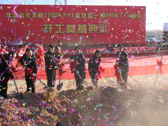2009年3月20日全面开工建设,设计委托国家工业和信息化部十一设计院,设计已编制完成。制盐设备2008年年底已订购,按项目计划:办公楼、主厂房今年7月份竣工,配套设施等10月份竣工,11月设备调试,年底试车投产。