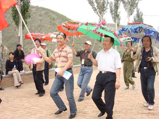 5月15日“走进和谐陕西——榆林行”采风慰问团一行48人,在米脂县委书记张雁冰、副书记王乃彦、常委宣传部长刘丽荣、副县长张庆林等领导陪同下来高西沟进行采风慰问。高西沟村民组织秧歌队进行热烈欢迎。采风慰问团一行除了和村民一道扭秧歌唱歌曲外,还举行了书画赠送仪式,场面热烈而激动。