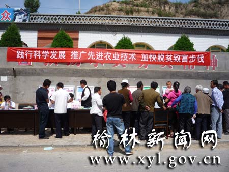 5月19日,榆林市科技局组织部分农业、畜牧、林业、医疗卫生等专家来到米脂县郭兴庄乡举行践行科学发展,推广先进农业技术,加快脱贫致富步伐的科技赶大集活动。
