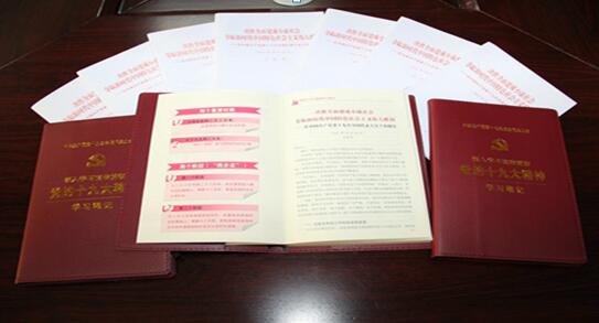 “口袋书”内容丰富,整理汇集了《党章》、“两学一做”、三严三实、全市党建工作应知应会概念等内容,提炼了党建工作中一些需知知识,许多提法和概念“一目了然”。该书一大特点是内容全面、文字言简意赅、阐述精要,增强了党员学习教育的针对性和实效性;另一特点是其设计小巧、实用,易携、易读、易记,已经成为公司全体党员日常政治理论学习的“掌中宝”。十九大专用笔记本前半部分集“十个方面历史性成就”“一个历史使命与四个伟大”“习近平总书记在十九大会上的报告”等内容为一体,内容图文并茂、功能性强。
