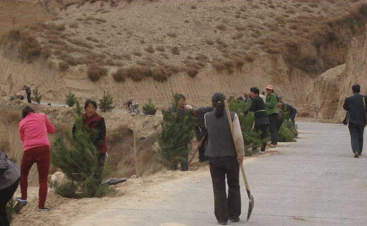 米脂县石沟镇鸳鸯山村今春栽油松1320余株