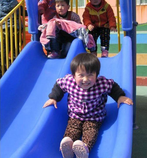 米脂县石沟镇幼儿园是该县农村第一所规范化幼儿园,整个建设项目共投资200多万元,2011年开园,目前已有78名学龄前儿童在此上学,有7名专业老师负责教学。去年下半学年,该园实现了免费学前教育,之前每年收取的700元保教费和300元伙食费全部由政府补贴,大大减轻了农村家庭的经济负担。图为幼儿园的孩子们在溜滑梯